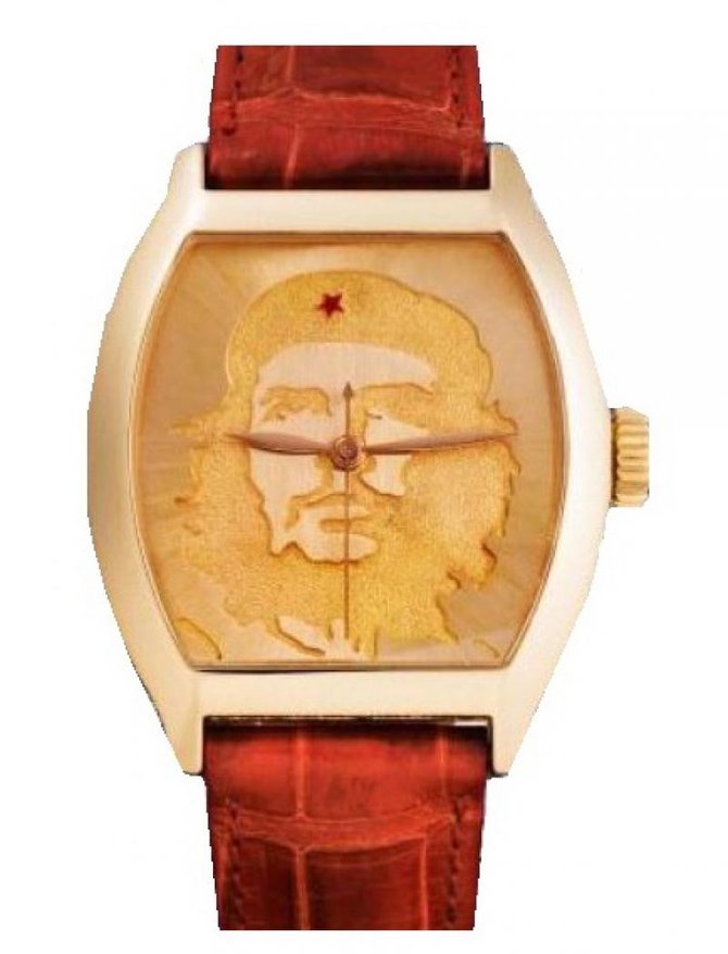 Мужские наручные часы Antoine Preziuso Che Guevara представлены в бочкообразном корпусе из желтого 18-каратного золота, диаметром 47.2 миллиметра, с герметичностью до 30 метров. Серия выпуска ограничена 30-ю экземплярами. Механизм работает от ручного подзавода и обладает 42-часовым запасом хода. На золотом циферблате с гильошированным вручную образом великого латиноамериканского революционера Эрнесто Че Гевары указываются часы, минуты и секунды. В комплект входит ремешок из крокодильей кожи с классической золотой пряжкой. В отличие от своих "коллег по цеху" - швейцарских производителей элитных часов, Antoine Preziuso - молодая марка. Она была основана в 1990 году и свою репутацию зарабатывала кропотливым трудом, а не многовековой историей.