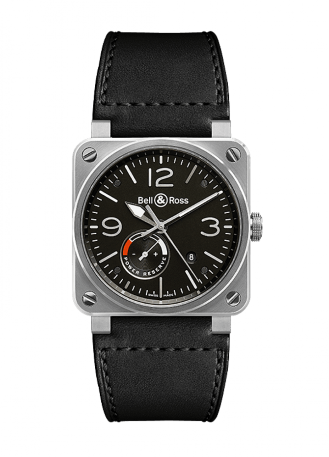 За выполнение часовых функций отвечает швейцарский механизм с автоматическим подзаводом. Он помещен в 42-миллиметровый квадратный корпус из нержавеющей стали. Круглый циферблат покрыт сапфировым стеклом с антибликовым покрытием. Стрелки и часовые индексы с нанесением фото-люминесцентного покрытия Superluminova®. Герметичность корпуса - 100 метров. Кожаный ремешок наделен классической застежкой. Рифленая заводная головка. Авиационная коллекция "Аviation" создавалась профессионалами для профессионалов. Bell & Ross - сравнительно молодая часовая компания. За годы своего существования марка обрела конкурентоспособность и часы Bell & Ross стали пользоваться успехом. Компания Bell & Ross представляет механические часы BR 03-97 с индикатором уровня запаса хода механизма. Кроме этой функций, на циферблате указываются часы, минуты, дата и секунды.