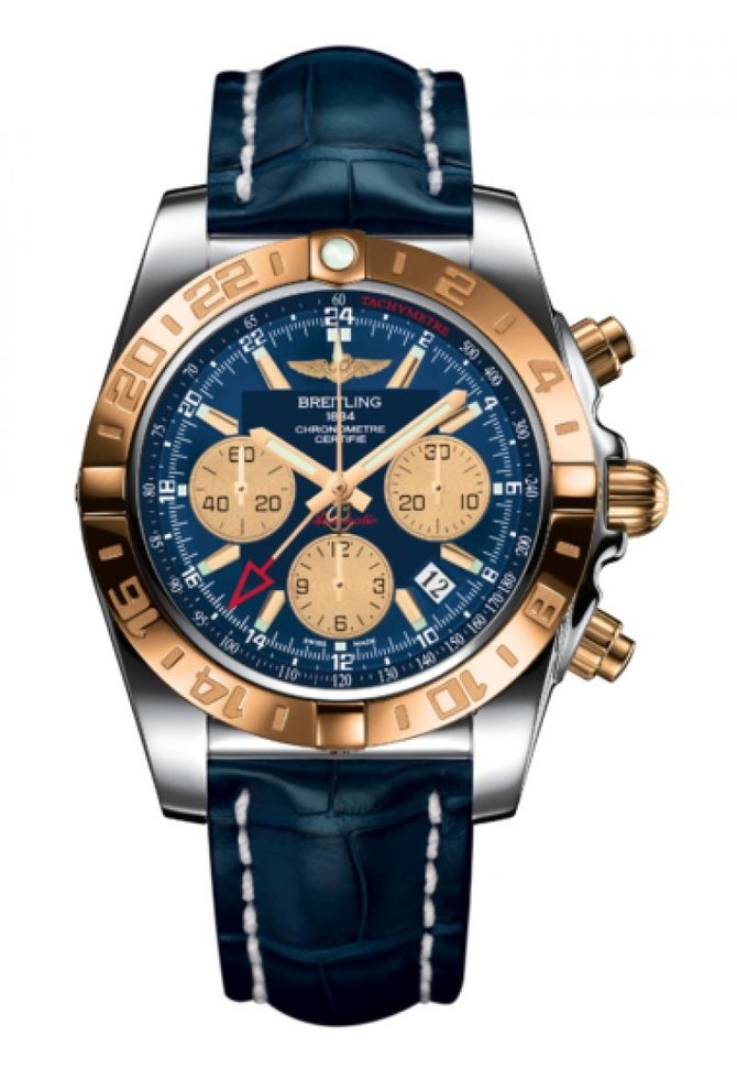 Представляя часы Chronomat 44 GMT, компания Breitling даёт путешественнику возможность с непревзойдённой лёгкостью и удобством пользоваться своим времяизмерительным прибором. Владельцу их нужно только вытянуть заводную головку и повернуть её вперёд или назад, чтобы перейти к тому или иному часовому поясу без потери точного положения минутной стрелки. Эта модель, снабжённая мануфактурным механизмом Breitling Caliber B04, является одним из немногих хронографов, где установлена такая удобная система перехода между двумя часовыми поясами. Марку также отличает вращающийся безель, предоставляющий возможность распознавания третьего часового пояса, с обозначениями 24 часов. КАЛИБР: Breitling Caliber 04; ЗАПАС ХОДА: мин. 70 часа; ХРОНОГРАФ: 1/4 секунды, 30 минут, 12 часов; КОЛЕБАНИЙ/ЧАС: 28800 кол./час; КАЛЕНДАРЬ: окошко на циферблате; БЕЗЕЛЬ: вращающийся в двух направлениях; ЗАВОДНАЯ ГОЛОВКА: завинченная, два уплотнения; СТЕКЛО: выпуклое сапфировое, с антибликовым покрытием с обoих сторон; ДИАМЕТР: 44,00 мм; ВЕС (БЕЗ РЕМЕШКА): 130,30 г.