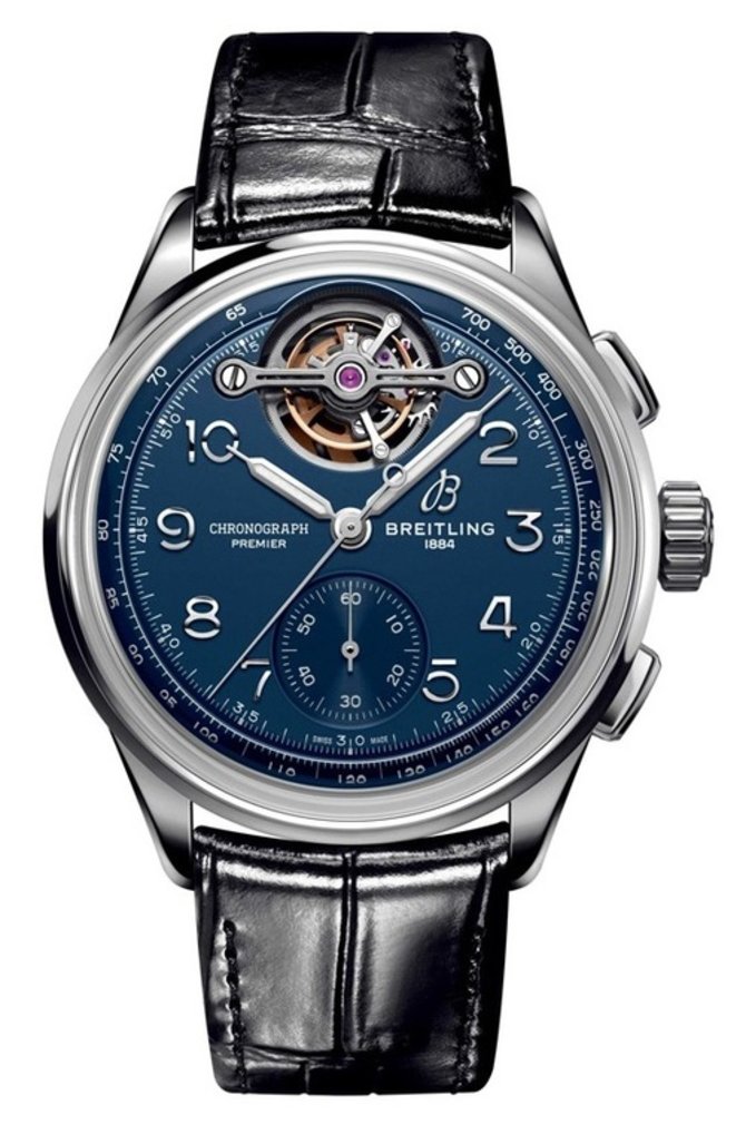Мужские швейцарские часы от Breitling - Premier B21 Chronograph Tourbillon 42 LB2120171C1P1 выпущены в корпусе из платины, диаметром 42 мм. Часы оснащены автоматическим механизмом B21 с 55-часовым запасом хода. Турбийон нивелирует влияние земной гравитации на точность хода механизма. На циферблате показываются часы, минуты, секунды, тахиметр, данные хронографа. Защитное стекло выполнено из сапфирового кристалла с противобликовым покрытием сверху. Задняя крышка также из сапфирового стекла. Часы поставляются с ремнем из кожи аллигатора черного цвета и платиновой застежкой. Герметичность корпуса - 100 метров. Год выпуска часов - 2023.