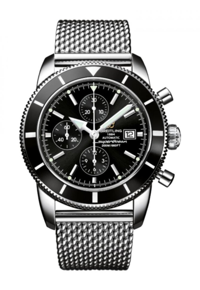Superocean Héritage Chronographe сочетает в себе необычный внешний вид с превосходными рабочими качествами. Мощный стальной корпус диаметром 46 или 44 мм, водонепроницаемый на глубине до 200 м (660 футов), скрывает в себе механизм с автоподзаводом, имеющий официальный сертификат хронометра. Приверженцы стиля, прочности и комфорта оценят широкий выбор ремешков и браслетов – стальной браслет миланского плетения даёт отсылку к первоначальному браслету этой модели, каучуковый ремешок хорошо сочетается с видом безеля. Две модели (46-мм с малыми циферблатами под цифрами 12, 9 и 6; и 44-мм с малыми циферблатами под цифрами 9 и 3) также доступны с безелем, украшенным кольцом из 18-каратного красного золота.Часы Breitling являются абсолютно уникальной швейцарской маркой, которая известна своими стильными хронографами с авиационным дизайном. На счету мастеров фирмы очень много оригинальных технических новшеств, которые и смогли прославить этот бренд. Удобство, точность и специфические функции сделали наручные часы Breitling самыми популярными среди пилотов Первой мировой войны и сразу после нее.