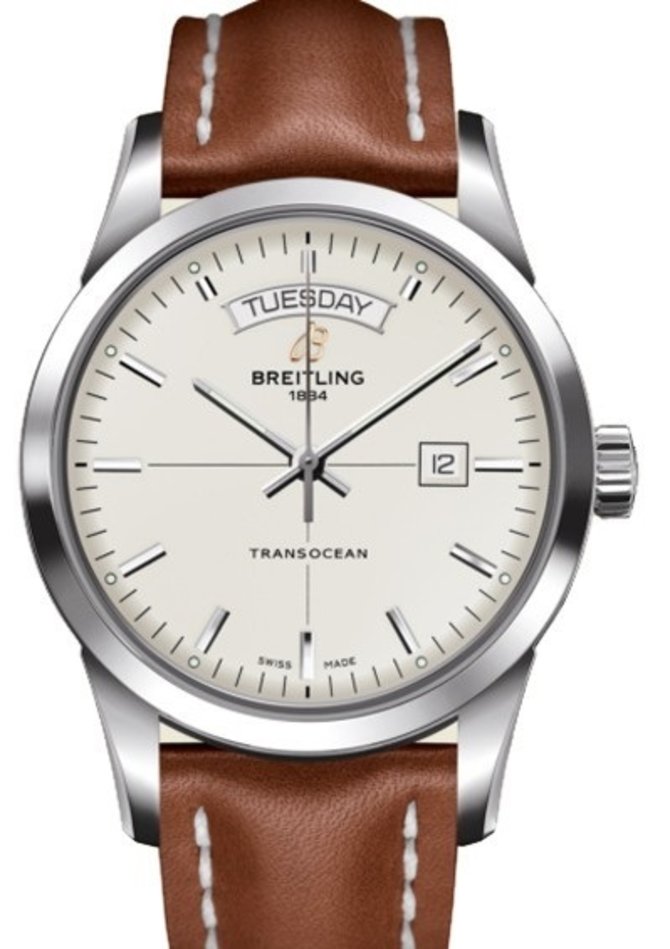 Классический дизайн наручных часов Breitling Transocean Day & Date A4531012/G751/433X/A20BA.1 успешно сочетается с элегантным коричневым ремешком из натуральной кожи теленка. В комплекте идет классическая пряжка из стали. Круглый полированный корпус из стали выполнен в диаметре 43 мм х 12.8 мм. Классическая модель имеет достаточно высокий уровень водонепроницаемости корпуса - 100 метров. Стрелки и метки, выполненные вручную из стали, покрыты люминесцентным покрытием для индикации данных в условиях плохого освещения. Циферблат защищен прочным стеклом из сапфира. Калибр Breitling 45 имеет запас хода на уровне 40 часов и автоматический подзавод.