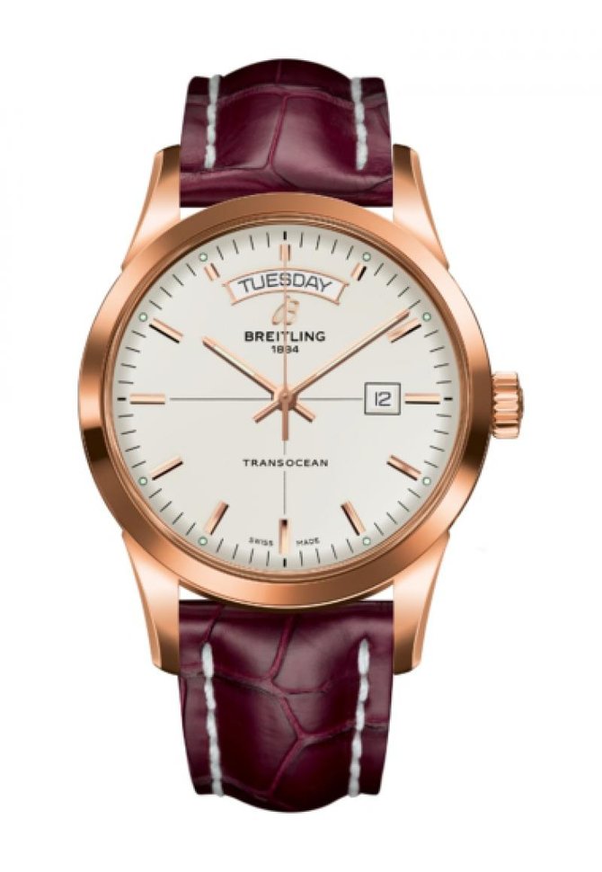 История компании Breitling взяла свое начало еще в 1884 году, когда молодой немец Леон Брайтлинг открыл часовую мастерскую в городе Сент-Имье. Тогда он специализировался на производстве хронографов. Спустя 12 лет фирма уже носила название "G. Leon Breitling S.A. Montbrillant Watch Company" и переносится в Ла-Шо-де-Фон, который и до сих пор считается "столицей" часовщиков. После смерти Леона Брайтлинга его дело унаследовал сын Гастон, а впоследствии и внук Вилли. После того как Вилли подписал контракт с Британским воздушным Министерством, он приступил к выпуску часов для Королевских Воздушных сил. Впоследствии было подписано ещё много договоров с мировыми авиационными компаниями. В 1979 году владельцами компании стали Теодор и Эрнест Шнайдеры. Новые владельцы сумели сохранить ведущий стиль часов Breitling - связь с аэронавтикой. Это не удивительно, ведь Эрнест Шнайдер был не только часовых дел мастером, но и пилотом. Именно он окончательно наложил на часы Breitling имидж авиационных, закрепил за ними репутацию непревзойдённого качества и великолепного дизайна. В наши дни Breitling являются непременным лидером в авиационной тематике. Каждая линия часов Breitling - это множество моделей со всевозможным дизайном. Но неизменными чертами остаются: крупный корпус, контрастная отделка и внешний вид, имитирующий кабину пилота. Слегка скошенный по краю безель, изящные крепления и безупречный корпус, скрывающий механизм с автоподзаводом, обладающий сертификатом хронометра: часы Transocean Day & Date – подлинное воплощение элегантности, сплав классики и современности. На чёрном или серебристом циферблате особенно хорошо виднеются в прорезях оригинальные указатели даты и дня недели – первый располагается рядом с цифрой 3, второй изогнулся, как арка, под цифрой 12. Эта модель, квинтэссенция уравновешенности и простоты, украшена накладными метками часов и стрелками, благодаря чему так легко увидеть, какое время они указывают, а также тонкой крестообразной накладкой, приводящей на память дизайн оригинальных часов Transocean.