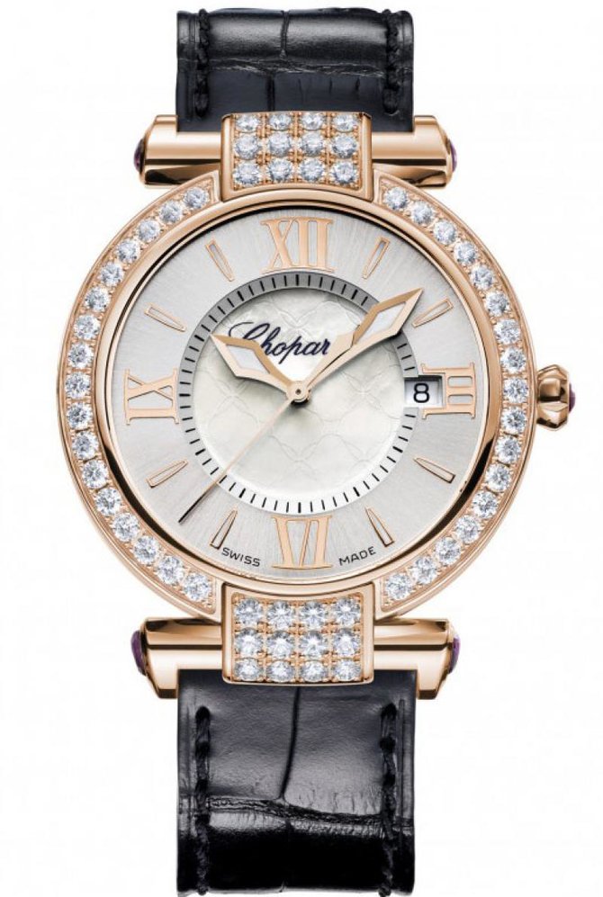 Безель данной модели из белых бриллиантов. В целом для бренда характерно сочетание высочайшего часового мастерства и оригинального дизайна, превращающего каждую новую модель в ювелирное украшение. Особенностью Chopard также является и то, что все до последней детали своих часов фирма создает сама, в отличие от существующей практики заключать в собственный корпус часовые механизмы других известных швейцарских брендов.Chopard был взят на вооружение швейцарскими железнодорожниками. Это не только обеспечило фирме весьма широкий рынок сбыта, но и сильно подняло ее в смысле репутации и и авторитета. Железнодорожники тогда были везде в моде, а швейцарские к тому же еще и славились своей точностью. Модификации этого “железнодорожного” хронографа фирмы Chopard выпускает и по сей день – в корпусах из 18-каратного золота и платины. Ушко для цепочки и подчеркнуто скупой классический дизайн намерено сохраняются. Если бы мы взялись утверждать, что главное достоинство часов Chopard – изысканный стиль и безупречный вкус, часовщикам это было бы обидно. Но тем не менее это так. Точность, сложность, оригинальность узлов – у механизмов Chopard все это есть. Но у других бывает и лучше. Престижная марка, но кто из серьезных швейцарцев не престижен? Зато во всем, что касается красоты, Chopard великолепен. Особенно если учесть, что эта красота придумана специально для мужчин. Мужчины, как известно, консервативны. Отсюда ставка на традиционный дизайн.