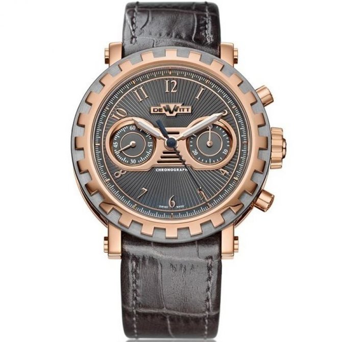 Chronostream это вдохновение, которое можно найти в спортивном мире. Его по-настоящему эффектный циферблат передает дух рационализации и напоминает спидометр гоночного автомобиля. Дизайн циферблата, как и всегда, вдохновлен миром спортивных ретро автомобилей. Циферблат также украшен накладными арабскими цифрами из золота и золотыми стрелками - "мечами". Модель представлена в корпусе из розового золота 18 карат и тантала. Калибр механический DW 6005 с автоматическим подзаводом и запасом хода до 48 часов, частота колебаний баланса 28,800 пк/час. Водонепроницаемость до 30 м. Ремешок из кожи аллигатора с вставкой из розового золота. Лимитированная серия.