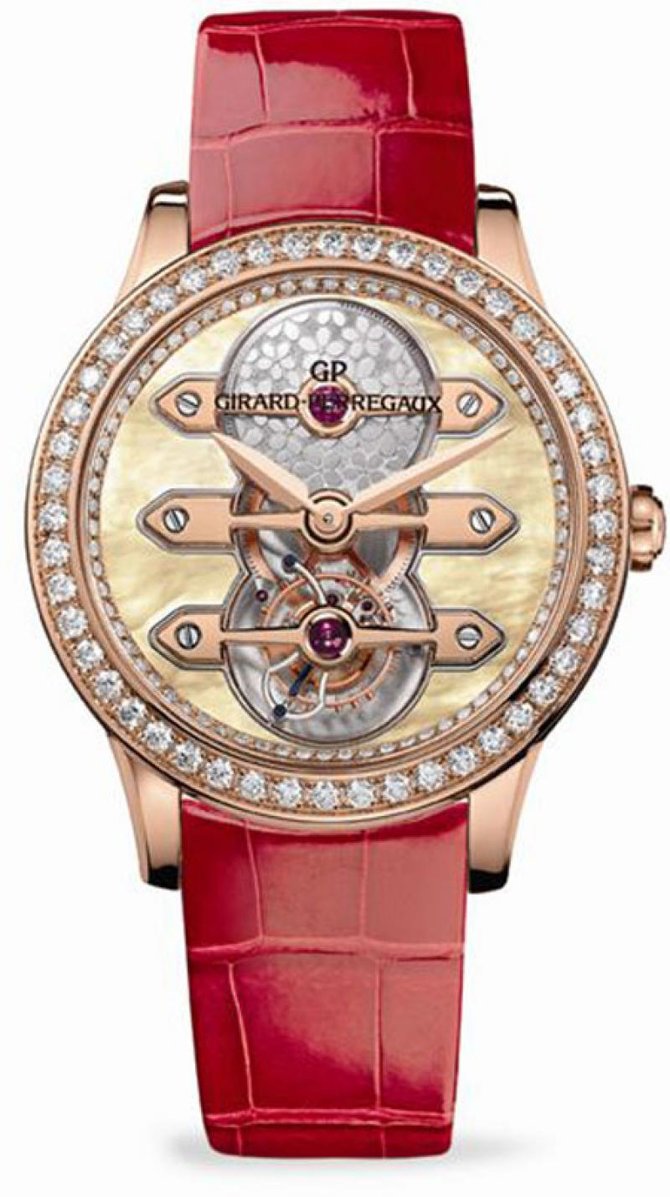 Элегантные женские швейцарские часы Girard-Perregaux 1966 Lady представлены женскому обществу в изящной комбинации золотого корпуса и браслета из кожи крокодила с золотой вставкой, механизм часов автоматический; особенности модели - турбийон, водостойкие, безель из белых бриллиантов 0.85 ct, на циферблате также размещены белые бриллианты; запас хода - 36 часов. На сегодняшний день швейцарские часы Girard Perregaux – особенное сочетание дизайна моделей и механизмов. Girard Perregaux предназначены не для всех, а для истинных ценителей, которые четко осознают, чем является качество, традиции и стиль. Бренд Girard Perregaux обладает столетним опытом в часовой индустрии. Быстро, после создания, компания Girard Perregaux стала популярной, выпустив в жизнь наручные часы с плоским корпусом. Издавна, да и по сей день, все детали швейцарских часов Girard Perregaux скрупулезно проверяются на всех этапах сборки. Большинство моделей часов Girard Perregaux персонализированы, они изготовлены для истинных ценителей высокой часовой моды. История бренда, обильная занимательными фактами и значимыми событиями, насчитывает больше 200 лет. Будущее у итальянского предпринимателя, любителя парусного спорта, ярого автомобилиста и собирателя раритетных хронометров, которого звали Луиджи Макалузо, было сомнительное, когда он решил взяться за спасение утопающей мануфактуры Girard-Perregaux из Ла Шо-де-Фона. Неоспоримый факт, что Girard Perregaux умеет справляться с трудностями на своем пути.