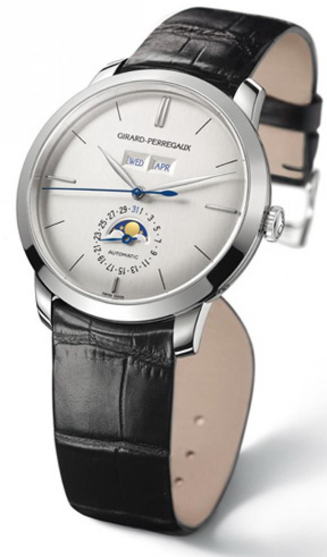 Швейцарские часы Girard-Perregaux Girard-Perregaux 1966 Full Calendar 49535-79-152-BK6A. Швейцарские часы Girard Perregaux - это олицетворение долголетнего мастерства наилучших швейцарских часовщиков. На сегодняшний день наручные часы Girard Perregaux сидят на запястьях многих популярных личностей. Часы Girard Perregaux - это комбинация уникального дизайна и сложных механизмов; они созданы для истинных ценителей традиций, качества и стиля. Удобные, точные, надежные, с четко читаемыми знаками, часы этой серии безупречно служат владельцу и при повседневной носке, и в экстремальных ситуациях. Первой компанией, выпустившей в серийное производство наручные часы (как альтернативу карманным часам), является швейцарский бренд Girard-Perregaux. Собственно под этой торговой маркой в 80 годы XIX в. была создана большая серия наручных часов для военно-морских сил Германии. На сегодняшний день швейцарские часы Girard Perregaux – особенное сочетание дизайна моделей и механизмов. Girard Perregaux предназначены не для всех, а для истинных ценителей, которые четко осознают, чем является качество, традиции и стиль. Бренд Girard Perregaux обладает столетним опытом в часовой индустрии. Быстро, после создания, компания Girard Perregaux стала популярной, выпустив в жизнь наручные часы с плоским корпусом. Издавна, да и по сей день, все детали швейцарских часов Girard Perregaux скрупулезно проверяются на всех этапах сборки. Большинство моделей часов Girard Perregaux персонализированы, они изготовлены для истинных ценителей высокой часовой моды.