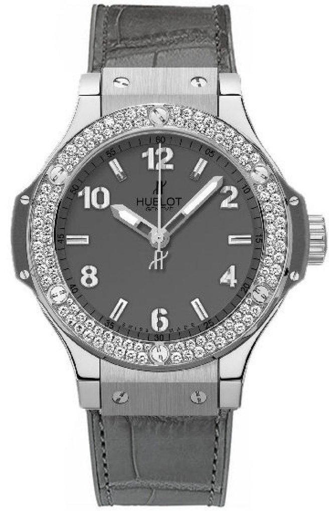 Великолепная модель женский наручных часов из серии Big Bang 38mm Earl Gray Steel 361.ST.5010.LR.1104 от часовых мастеров производителя Hublot не оставит к себе никого равнодушным, потому как завораживает своим внешним классическим видом и функциональностью. Круглый корпус выполнен из нержавеющей стали, и имеет такие размеры: 38 мм в диаметре. Механизм данной модели кварцевый с калибром HUB 2900. Прочные сапфировые стекла, устойчивые к царапинам и другим повреждениям закрывают корпус с обеих сторон. На сером циферблате шикарно смотрятся отлитые вручную посеребренные стрелки. Водонепроницаемость данной модели составляет 30 метров. Женский кожаный ремешок серого цвета сделан из кожа аллигатора, оснащен вставкой из нержавеющей стали, так же имеется откидная застежка. Безель составляет 126-и белых бриллиантов 0.87ct. Корпус данной модели так же инкрустирован 194-мя белыми бриллиантами 0.82 ct.