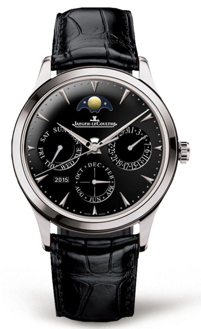 Швейцарский часовой бренд с долгой историей Jaeger-LeCoultre представил новую модель многофункциональных швейцарских часов с вечным календарем "Master Ultra Thin Perpetual" в корпусе из нержавеющей стали, диаметром 39 миллиметров. На циферблате астрономических часов отображается такой ряд функций: часы, минуты, секунды, дата, вечный календарь, год, день, месяц, фазы Луны. За их индикацию отвечает швейцарский мануфактурный механизм Jaeger-LeCoultre 868 с автоматическим подзаводом, состоящий 336 элементов, 46 из которых - драгоценные камни. Высота механизма 4.72 мм; балансовая частота - 28 800 пк/час; запас хода - 38 часов. Круглый стальной корпус имеет 50-метровую водонепроницаемость. Толщина корпуса - 9.2 мм. Ремешок из кожи аллигатора дополняет раскладная застежка из стали (18 мм). Стекло сапфировое. Данная модель была представлена на престижной часовой выставке SIHH 2016. Заводная головка служит для корректировки всех данных. Хотя до 2100 года часы абсолютно не нуждаются в настройке.