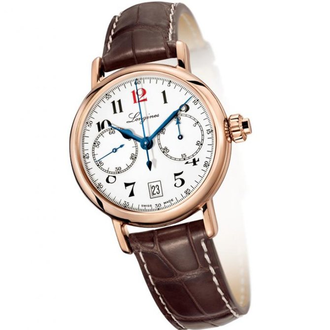 Сегодня, Longines сочетает оригинальную эстетику своих самых заметных исторических моделей с самыми современными технологиями часового дела. Изделия Heritage представляют собой дань уважения духу первопроходцев, который воодушевляет Longines с момента своего создания. Марка сопровождала множество пионеров как в воздухе, так на земле и под водой. Хронометры Longines черпают свою суть из этого опыта. Они иллюстрируют непреходящий характер марки, а также беспрестанно обновляемую способность чтить Историю, с утонченностью и элегантностью. Среди эксклюзивных изделий этого столпа Наследия, без сомнения самыми известными являются часы Lindbergh Hour Angle Watch, новое издание часов, разработанных для американского пилота Чарльза Линдберга в 1931 году. Longines Weems Second-Setting Watch, которые отдают дань навигационной системе Филиппа ван Хорн Вимса, как и Longines Twenty-Four Hours, новое издание часов, разработанных в 1950-е годы специально для пилотов компании Swissair, также фигурируют среди эмблематических моделей Heritage.Эти часы представлены в корпусе круглой формы из розового золота 18 карат. Имеют сапфировое стекло, устойчивое к царапинам с многослойным антибликовым покрытием изнутри. Водонепроницаемость данной модели до 3 бар(30 метров). Оснащены механическим механизмом с автоматическим подзаводом и хронографом с колонным колесом, частота 28 800 полуколебаний в час, запас хода 54 часа, калибра L788. Браслет выполнен из кожи аллигатора. Имеется прозрачная задняя крышка с сапфировым стеклом. Застежка пряжка.