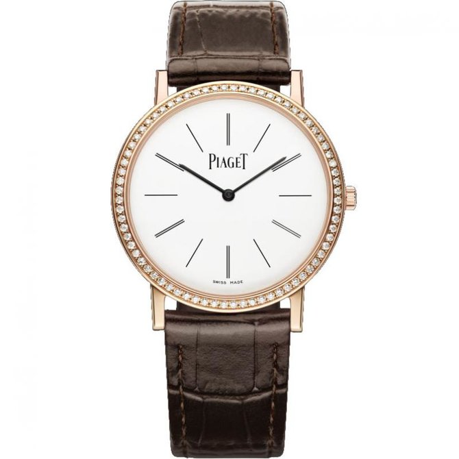 Создание этой великолепной модели, в которой гармонично сочетаются строгие пропорции и элегантная сдержанность, стало возможным благодаря исключительному артистическому мастерству дизайнеров Piaget. Сияние бриллиантов подчеркивает безупречную геометрию корпуса из розового золота. В сердце этих эмблематических часов таится ультратонкий механизм Piaget 430P. Корпус из розового золота 18 карат с 72 бриллиантами круглой огранки (около 0.5 карата). Ультратонкий мануфактурный механизм Piaget 430P с ручным заводом. Совершенная механика, словно королева, безраздельно правит в своих роскошных владениях. Водонепроницаемость данной модели до 3 бар(30 метров). Имеют сапфировое стекло. Браслет выполнен из кожи аллигатора. Имеется задняя крышка из сапфирового стекла. Застежка классическая.