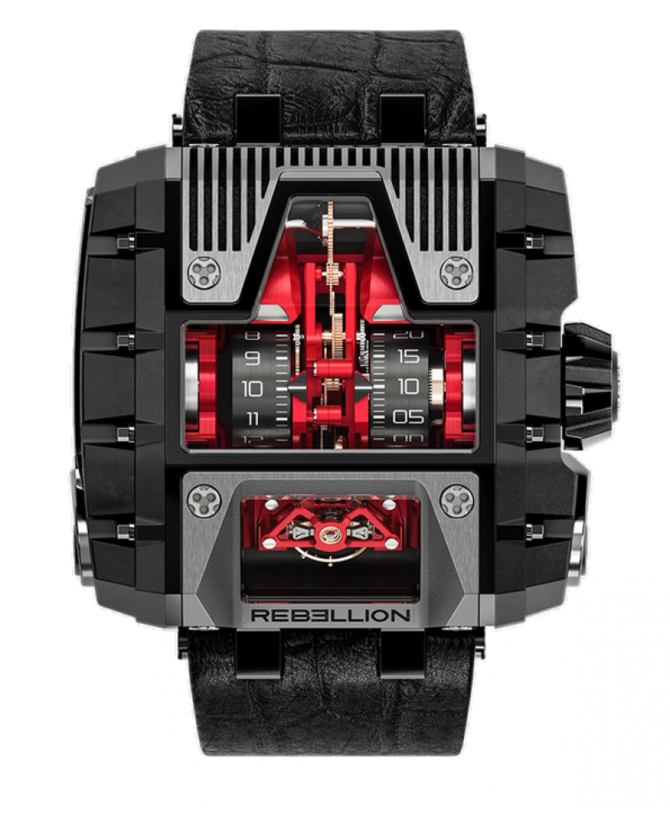 Компания Rebellion представила по-истине революционный механизм, уже вошедший в историю мировой часовой индустрии! Концентрат механики и инноваций мощности и производительности на Вашем запястье. Основной особенностью этой часовой линии является механизм моделей с запасом хода, внимание, 1000 часов! Это мировой рекорд уровня запаса энергии. Модели коллекции выпущены ограниченной серией - 25 экземпляров каждая. Все стекло, присутствующее на корпусе - сапфировое. Механизм T2K с великолепной отделкой является мануфактурным. На его разработку, а также корректировку, ушло три года исследований мастеров компании. T2K - образец инноваций и производительности Дизайн часов полностью разрушает все стереотипы, сложившиеся о наручных часах. Размер калибра, состоящего из 693 деталей и изготовленного из алюминиевого сплава авионал, составляет 38 х 41.3 х 13.6 мм. Укомплектованы часы ремешком из натуральной кожи страуса. Коллекция наручных часов Gotham беспрепятственно демонстрирует свою грозную силу.