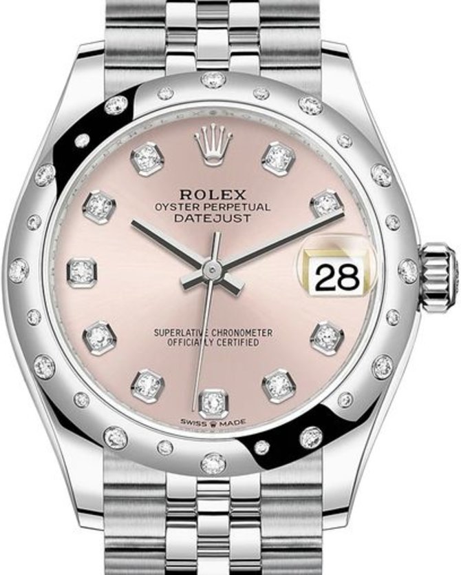 Женская линейка Datejust швейцарского часового бренда Rolex пополнилась механическими часами класса "люкс" Jubilee Perpetual 31 mm Ref. 278344RBR-0034. Корпус выполнен в комбинации белого золота и нержавеющей стали в диаметре 31 мм. Безель корпуса инкрустирован белыми бриллиантами классической огранки. На сатинированном циферблате розового цвета в качестве часовых меток установлены белые бриллианты. Апертура даты оснащена циклопной линзой, запатентованной Rolex, что увеличивает показания данных. Для защиты циферблата от возможных повреждений установлено сапфировое стекло с нанесением антибликового покрытия. Фирменный браслет из нержавеющей стали Jubilee укомплектован раскладывающейся застежкой. Швейцарский мануфактурный калибр механического типа 2236 с функцией автоматического подзавода и запасом хода на 55 часов работы разработан инженерами Rolex в 2020 году. Статус хронометра калибра подтверждает наличие сертификата COSC. Корпус имеет повышенный уровень водонепроницаемости - 100 метров.