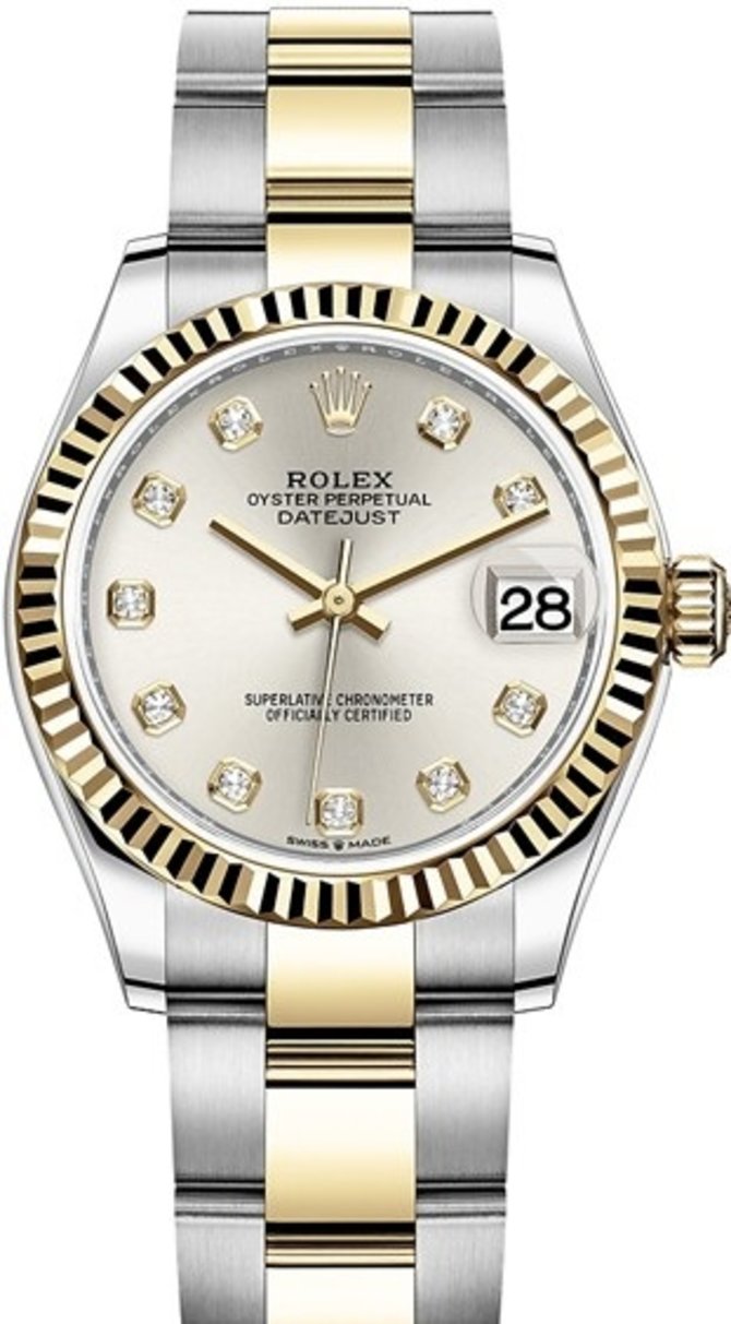 Швейцарские наручные часы Rolex Datejust 31mm Steel and Yellow Gold 278273-0019 были представлены мануфактурой люкс класса в круглом комбинированном корпусе из желтого золота и стали нержавеющего типа. Часы комплектуются браслетом фирменного образца OYSTER, который отличается плоскими трехрядными звеньями, из золота и стали. Данная модель пополнила коллекцию Datejust. 31-миллиметровый корпус имеет 100-метровый уровень герметичности. Инженеры компании разместили в корпусе механизм с автоматическим подзаводом 2236 с сертификатом хронометра COSC. Его запас хода рассчитан на 55 часов. На сером циферблате отображаются часы, минуты и секунды, а под циклопной линзой около отметки "3 часа" - дата. Золотые стрелки указывают данные текущего времени на часовую разметку из натуральных белых бриллиантов классической огранки.