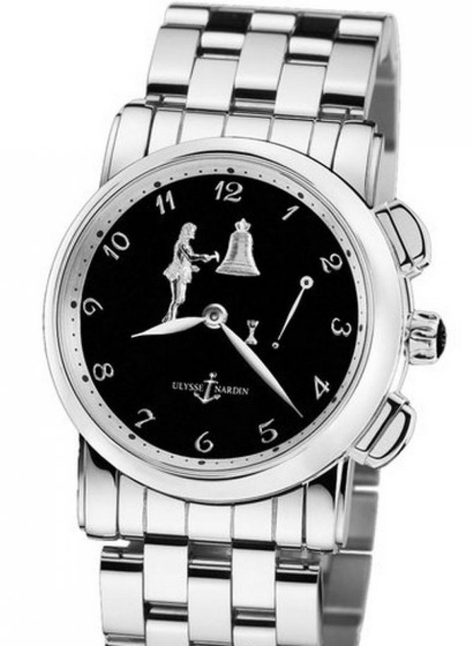 В часах Ulysse Nardin Classico установлен совершенный швейцарский механизм, имеющий официальный сертификат COSC. Более 165 лет компания производит механические часы высочайшего класса. Морские хронометры Ulysse Nardin до сих пор высоко ценятся коллекционерами со всего мира. Ulysse Nardin остается в рядах новаторов часовой индустрии, первыми внедряя новые материалы для производства деталей механизма и изобретая самые необычные механические шедевры. Мануфактура Ulysse Nardin развеивает стереотип о корабельном якоре как о приспособлении, тормозящем движение судна. Сделав его своим символом, компания уверенно двигалась к вершинам, пока не стала одной из самых уважаемых и влиятельных не только в Швейцарии, но и во всем мире. Впервые часы под маркой Ulysse Nardin были созданы в 1846-м году. Судьба у них была непростая, но чрезвычайно романтичная. Из родного Ле-Локля эти часы отправились бороздить моря. Необычное название бренда — не что иное, как имя его создателя. Швейцарский мастер Улисс Нардан принадлежит к династии часовщиков, что на его родине, надо сказать, не редкость. Профессии он обучался не только у собственного отца, которого звали Леонарда-Фредерика Нардана, но и двух именитых наставников, очень уважаемых в те времена — Луи-Жан-Ришара ди Бресселя и Фредерика-Вийома Дюбуа. Последний-то как раз и слыл специалистом по части изготовления астрономических часов и приборов для навигации. С легкой руки Дюбуа молодой мастер Улисс Нардан и заинтересовался морскими хронометрами. Циферблат - черный оникс, жакемары из белого золота. Запас хода - 40 часов. Серия ограничена.