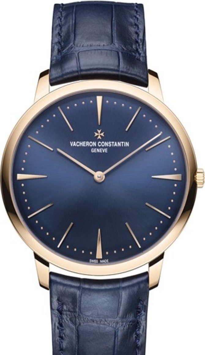 В корпусе из чистого розового 18-каратного золота, диаметром 40 мм, расположен швейцарский мануфактурный автоматический механизм от компании Vacheron Constantin - 1400, который имеет 40-часовой запас хода и отвечает за индикацию часов и минут. В тон к сатинированному циферблату синего цвета подобран и крокодиловый ремешок. Классическая застежка из золота идет в комплекте. Лицевая часть корпуса защищена антибликовым сапфировым стеклом. На циферблате классических часов Patrimony Contemporaine Manual Winding золотыми стрелками, указывающими на золотые метки, указывается текущее время в часах и минутах. Водонепроницаемость корпуса - 30 метров. Модель выпущена в 2019 году.