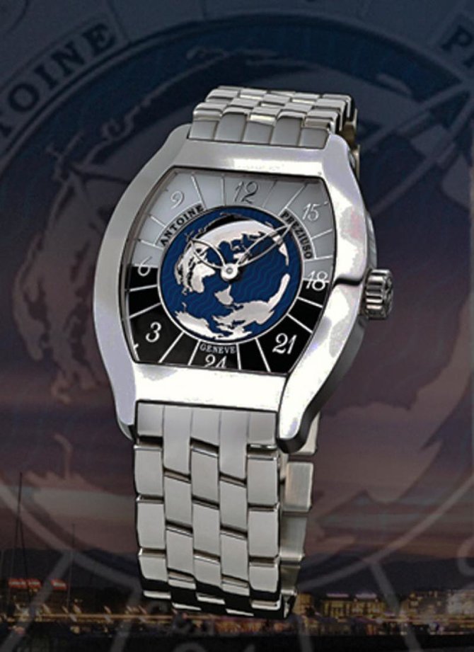 Линия наручных часов Transworld Tonneau с указателем "день/ночь" на модели Земли выпущена швейцарской часовой маркой из Женевы Antoine Preziuso в нескольких вариантах, к примеру: в корпусе из нержавеющей стали с ремешком из кожи аллигатора либо со стальным браслетом; в корпусе из розового золота с ремешком из кожи крокодила. Часы работают на механизме с автоматическим подзаводом, обладающим 42-часовым запасом хода. Диаметр корпуса - 47.2 миллиметров. Герметичность корпуса составляет 30 метров. Указатели времени домашнего часового пояса и «день/ночь» работают согласованно со стрелками основного циферблата. По ним легко определить местное время, а по специальному индикатору узнать, день там или ночь. Индикатор «день/ночь» полезен, как минимум, для того, чтобы не позвонить домой в три утра вместо трёх пополудни.