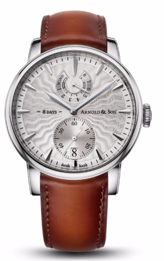 Новая модель швейцарских часов от компании Arnold & Son выпущена в круглом корпусе из нержавеющей стали, диаметром 43 миллиметра. Защитное сапфировое стекло покрыто двусторонним антибликовым покрытием. Корпус с 30-метровой герметичностью. Функциональность обеспечивает мануфактурный механизм с ручным подзаводом, калибр A&S1016. Он стоит на 33 драгоценных камнях. Запас хода - минимум 192 часа. Балансовая частота - 21600 полуколебаний в час. Задняя крышка выполнена из сапфирового стекла, тем самым открывает шикарный вид на работу механизма. Данная модель полностью собрана вручную мастерами мануфактуры Arnold & Son. К запястью часы крепятся с помощью ремешка из натуральной телячьей кожи со стальной застежкой. Диаметр корпуса - 43 миллиметра. На гильошированном вручную циферблате указываются часы, минуты, секунды, дата и уровень запаса хода.