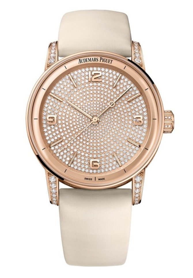 Механические мануфактурные швейцарские часы АUDEMARS PIGUET, модель CODE 11.59 BY AUDEMARS PIGUET SELFWINDING 41 MM 15210OR.ZZ.D300VE.01, функционируют на базе механического калибра 4309 с автоподзаводом и запасом хода на 70 часов работы. Функции: часы, минуты, секунды. Корпус из розового золота, диаметром 41 мм, с 30-метровой влагостойкостью. Циферблат накрыт стеклом из натурального сапфирового кристалла с противобликовым покрытием. В комплекте с часами поставляется оригинальный ремешок из натуральной кожи теленка с застежкой из золота. Корпус и циферблат инкрустированы бриллиантами.