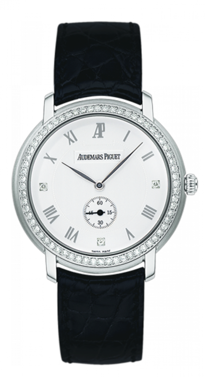 Дополнительная информация водонепроницаемость 20 м, безель из 64-х белых бриллиантов 0.77 ct. В 1875 году часовой мастер Жюль-Луи Одемар, получавший все больше и больше заказов на свои изделия от женевских торговых домов, объединился со своим другом детства талантливым коммерсантом Эдуаром-Огюстом Пиге. Так была зарегистрирована торговая марка Audemars Piguet, которая успешно пережила все политические и экономические кризисы ХХ века, удивительным образом всегда точно предвосхищая изменения часовой моды. В самом начале века успехом пользовались ультратонкие наручные часы, после Второй мировой войны настал пик популярности массовой механики в 70-е марка буквально взорвала рынок концептуальной моделью Royal Oak, основавшей целое направление Sport de Luxe, а с наступлением следующего тысячелетия Audemars Piguet сосредоточилась на поисках новых решений в часовой механике. Свою известность Audemars Piguet заработала созданием сложных часов – таких, как, например, самый маленький в мире механизм с репетиром 1891 года. Но сегодня лицом марки является Royal Oak. Эту модель можно назвать первыми часами стиля "спорт плюс гламур". а эту безумно популярную во многих странах коллекцию приходится 75% продаж. Впервые она появилась в 1972 году благодаря приглашенному компанией итальянскому дизайнеру Джеральду Дженте, соединившему 8-гранный рант с винтами с классическим круглым корпусом и буквально «вросшим» в часы браслетом.
