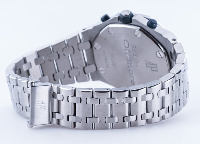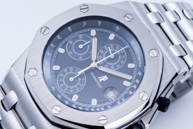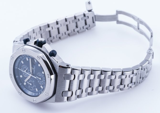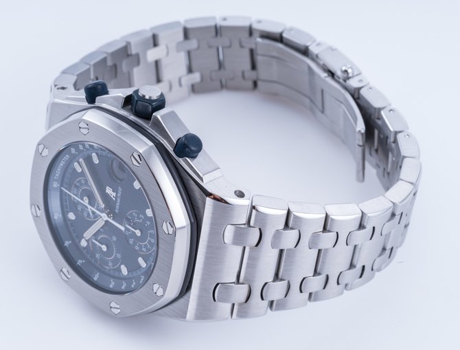 Установленный в часах Audemars Piguet Royal Oak Offshore Chronograph 25721ST.OO.1000ST.07.A мануфактурный механизм с автоматическим подзаводом AP 2326/2840 обеспечит владельца функциями хронографа, тахиметра, а также индикацией текущего времени и даты. Запас хода механизма рассчитан до 40 часов работы без подзавода. 44-миллиметровый корпус и браслет, которым доукомплектована модель, выполнены из чистой нержавеющей стали. Повышенная водонепроницаемость корпуса позволяет опускать часы под воду до 100 метров глубины. на руке часы зафиксирует раскладная застежка из стали. Многофункциональный циферблат швейцарских часов защищен сапфировым стеклом с противобликовыми свойствами. Швейцарский хронограф от бренда Audemars Piguet вошел в коллекцию Royal Oak Offshore.