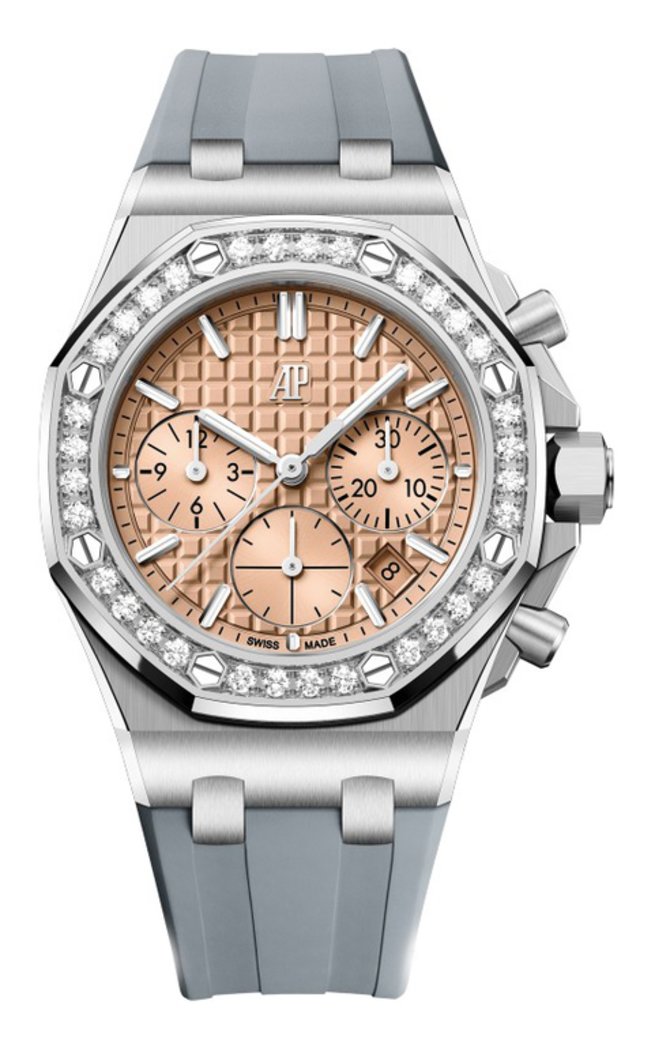 Швейцарская часовая мануфактура Audemars Piguet в 2023 году представила модель наручных часов с хронографом Royal Oak Offshore Chronograph 26231ST.ZZ.A178CA.01 в корпусе из стали со 50-метровой водонепроницаемостью. Безель инкрустирован бриллиантами классической огранки. Диаметр корпуса: 37 мм. Автоматический механизм (калибр AP 2385) мануфактурного производства Audemars Piguet обладает запасом хода на 40 часов. Сквозь выпуклое защитное стекло из сапфирового кристалла на золотистом циферблате демонстрируются часы, минуты, секунды, дата. Каучуковый браслет дополнен стальной застежкой.