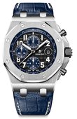 Спортивные швейцарские часы с функцией хронографа от компании Audemars Piguet - модель Royal Oak Offshore Chronograph 42mm 26238TI.OO.A056CA.01. Часы выпущены в 2021 году в круглом корпусе из титана, размером 42 х 15.2 мм. Часы функционируют на базе мануфактурного автоматического калибра 4404 с запасом хода на 3-е суток работы. На гильошированном циферблате, накрытом сапфировым стеклом, показываются часы, минуты, секунды, дата, тахиметр. Часовые метки и стрелки заполнены люминесцентным составом. Безель зафиксирован 8-ю винтами. Каучуковый ремень оснащен титановой застежкой. Водонепроницаемость корпуса - 100 метров.