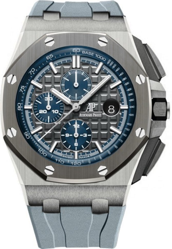 Компания по производству часов из Швейцарии AUDEMARS PIGUET презентовала наручные механические часы с автоматическим подзаводом Royal Oak Offshore Chronograph 44mm Ref. 26400IO.OO.A004CA.02. Корпус круглой формы был выполнен из титана + керамики в диаметре 44 мм. Гильошированный серый циферблат, где показываются часы, минуты, секунды, хронограф, дата, накрыт стеклом из сапфирового кристалла с противобликовым эффектом. Установленный в часах мануфактурный механический калибр 3126/3840 отличается запасом хода до 50 часов работы и функцией хронографа. Корпус герметичен до 100 метров. Фирменный ремень из каучука - в комплекте.