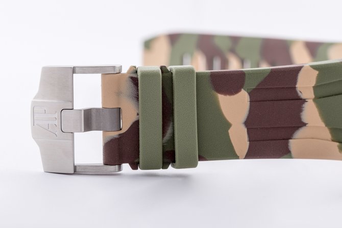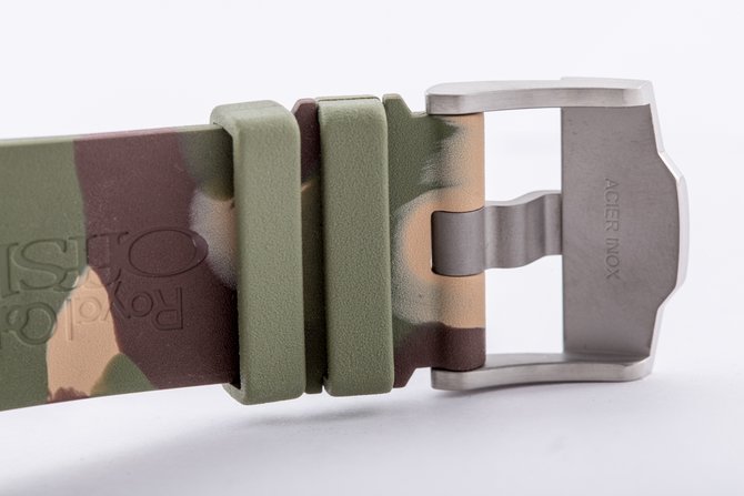 Тот, кто осмеливается, носит знакового героя - 44-миллиметровую модель из нержавеющей стали с накладным керамическим ободком цвета хаки, завинчивающейся заводной головкой, а также камуфляжным каучуковым ремешком. Бежевый циферблат с гильошированной отделкой накрывается высокопрочным антибликовым стеклом из сапфирового кристалла. На нем указывается время, дата и показываются данные хронографа, которым оснащен установленный мануфактурный механизм с автоподзаводом. На часовые метки и стрелки было нанесено люминесцентное покрытие. Застежка раскладная. Корпус отличается высокой герметичностью - 100 метров.