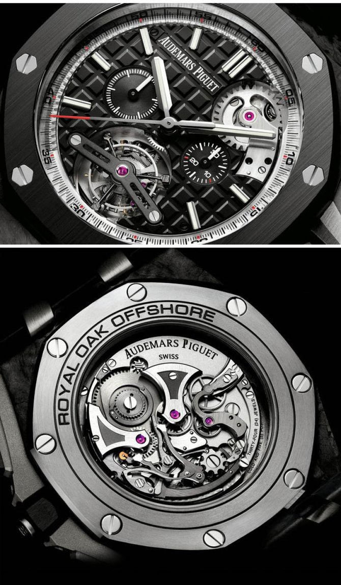 Компания Audemars Piguet представила новую модель Royal Oak Offshore Tourbillon Chronograph. Эта модель мало, чем отличается от Royal Oak Offshore Selfwinding Tourbillon Chronograph, но в этой модели можно понаблюдать за периферийным ротором в положении «1 ч» и за турбийоном в положении «6 ч». В целом, новинка выполнена в лучших традициях бренда. Лимитированная серия 50 экземпляров.