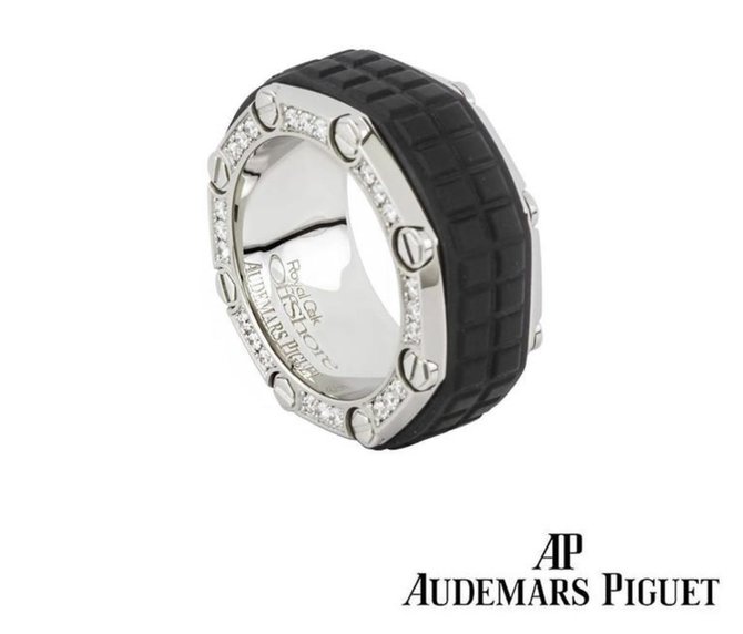 Audemars Piguet Royal Oak Offshore из титана, восьмиугольной формы, посередине с узорчатой каучуковой вставкой. Внешние инкрустированы 48 круглыми бриллиантами 0,67 карат.