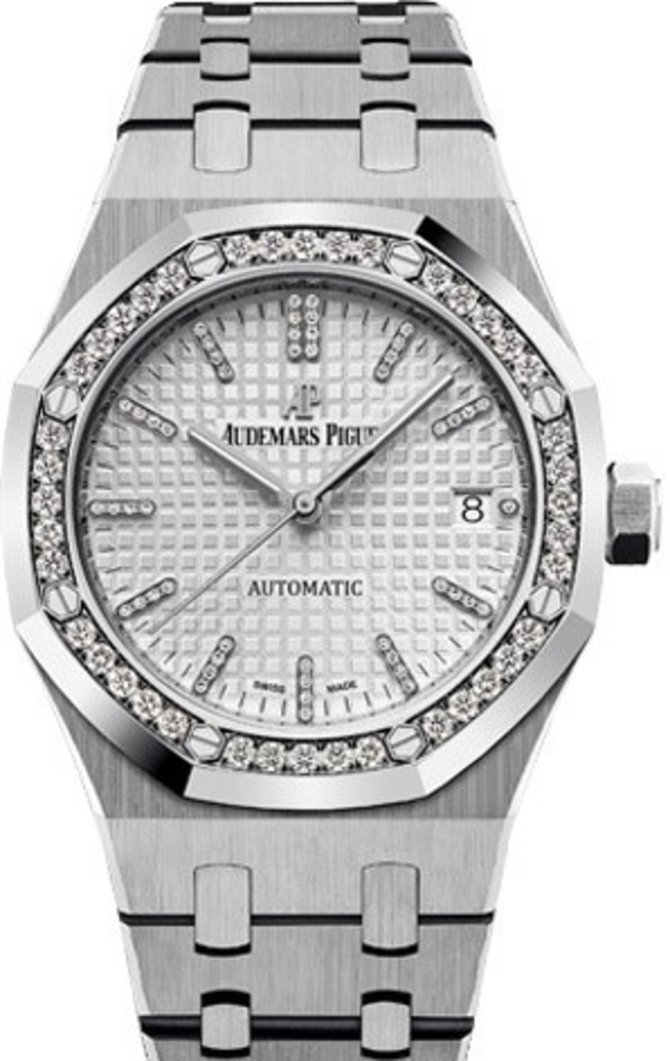 Данную модель женских швейцарских часов торговая марка Audemars Piguet представила в 2017 году. Новинка бренда выполнена из комбинации титана и платины (и корпус, и браслет). В комплекте - раскладывающаяся застежка. Безель корпуса женских часов украшен элегантными белыми бриллиантами огранки "классик". На гильошированном циферблате ручной работы расположены стрелки с люминесцентным покрытием, часовые метки с инкрустацией бриллиантами. Ювелирный циферблат надежно оберегает сапфировое стекло. Автоматический мануфактурный механизм от Audemars Piguet (Калибр 3120) с 60-часовым запасом хода. Водонепроницаемость - 50 метров. Количество бриллиантов - 40. Их общий вес - 0.92 ct.