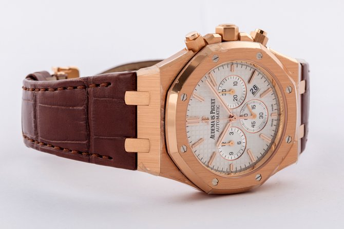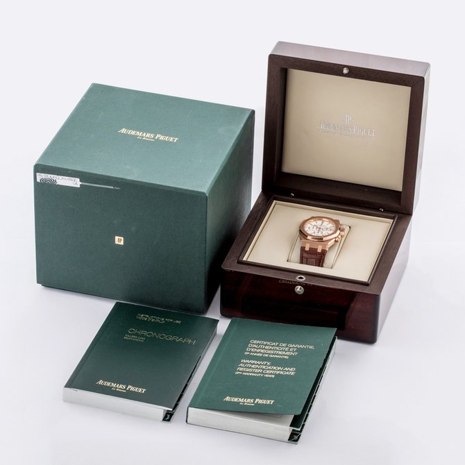 Предлагаем Вам очень стильную и оригинальную модель наручных часов знаменитой швейцарской фирмы Audemars Piguet. 26320OR.OO.D088CR.01 Механизм автоматический, Калибр 2385 Размеры корпуса 41 х 10.8 мм Корпус розовое золото 18к Особенности Водостойкие, Хронограф Функции часы, минуты, секунды, дата Циферблат серебристый гильошированный Запас хода 40 часов Ремешок кожа аллигатора с вставкой из розового золота 18к Дополнительная информация водонепроницаемость 50 м В 1875 году часовой мастер Жюль-Луи Одемар, получавший все больше и больше заказов на свои изделия от женевских торговых домов, объединился со своим другом детства талантливым коммерсантом Эдуаром-Огюстом Пиге. Так была зарегистрирована торговая марка Audemars Piguet, которая успешно пережила все политические и экономические кризисы ХХ века, удивительным образом всегда точно предвосхищая изменения часовой моды. В самом начале века успехом пользовались ультратонкие наручные часы, после Второй мировой войны настал пик популярности массовой механики в 70-е марка буквально взорвала рынок концептуальной моделью Royal Oak, основавшей целое направление Sport de Luxe, а с наступлением следующего тысячелетия Audemars Piguet сосредоточилась на поисках новых решений в часовой механике. И в наше время компания Audemars Piguet не собирается спускаться с высот своих достижений,а двигается в перёд и создаёт коллекцию Jules Audemars,линию ультра тонких классических часов самого высшего качества. Jules Audemars коллекция впитавшая в себя все достижения и традиции высокого часового мастерства компании за долгие годы. Изящные часы с вековой историей не раз доказывали свое изумительное качество и уникальность. В год выходит всего 15000 часов. Это говорит о долгой и кропотливой ручной работе, которая направлена на исключительную точность и изысканный внешний вид. Отличительной особенностью часов Audemars Piguet является сверхплоский часовой механизм, свидетельствующий как о высоком техническом уровне часового механизма, так и о его компактности.