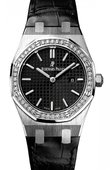 Ювелирная модель швейцарских часов Audemars Piguet на кварцевом механизме, помещенном в корпус из стали с искусной инкрустацией бриллиантами. Штаб-квартира часовой компании находится в швейцарском городе Ле Брассю. Элегантный ремешок белого цвета выполнен из кожи крокодила. Застежка классическая. В кинофильме "Терминатор 3" на руке главного героя блеснуло произведение Audemars Piguet, разработанное инженерами компании совместно с А. Шварценеггером. Корпус данной модели водонепроницаем до 50 метров глубины. Общий вес бриллиантов - 0.71 ct. Количество бриллиантов - 40. Гильошированный циферблат указывает часы, минуты и дату. Размеры стального корпуса: 33 x 7 мм. Знаменитости, носящие швейцарские часы Audemars Piguet: Лео Месси, Михаэль Шумахер, Криштиано Роналду, Арнольд Шварценеггер, Jay-z, Дольф Лундгрен, Хью Джекман, Скарлетт Йоханссон, Кэтрин Зета-Джонс и другие всемирно известные персоны.