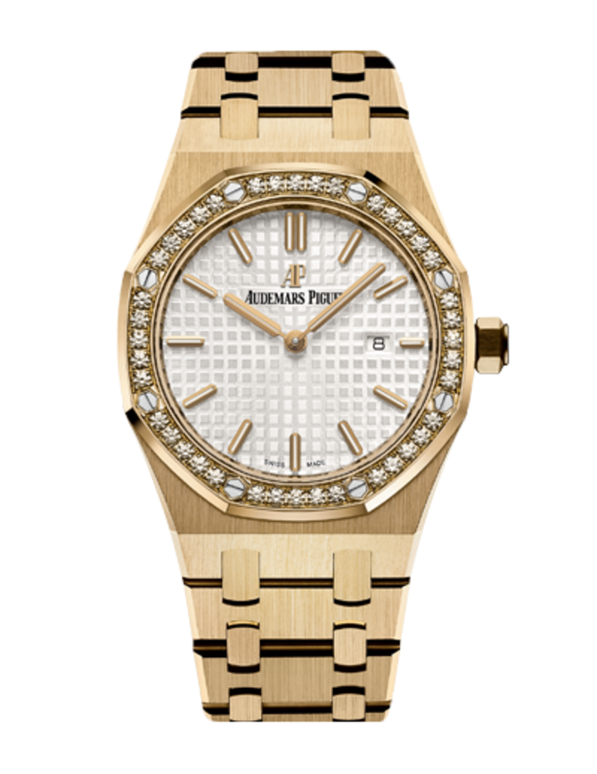 Представленная новинка "Quartz 67651BA.ZZ.1261BA.01" пополнила часовую линию "Royal Oak" от Audemars Piguet. Из функциональных особенностей модели стоит отметить кварцевый механизм (калибр 2713) и индикатор даты. Корпус часов выполнен из желтого золота и инкрустирован множеством бриллиантов. Общий вес 40 бриллиантов составляет 0.73 карата. Гильошированный циферблат защищен сапфировым стеклом. Герметичность корпуса - 50 метров. Элементы циферблата покрыты люминесцентным покрытием для комфортной читабельности в темное время суток. Модель укомплектована золотым браслетом с раскладывающейся золотой пряжкой AP. В 2016 году часовая мануфактура Audemars Piguet выпустила множество интересных часовых разработок, которые разрушают привычные часовые традиции и отличаются независимостью, современностью и смелой динамикой. Данная модель была официально представлена на престижной международной часовой выставке SIHH 2016, которая ежегодно проводится в середине января в Женеве.