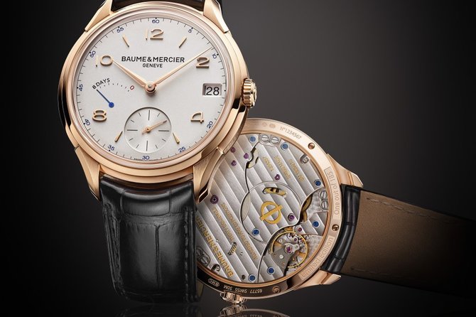 В честь собственного 185-летнего юбилея часовая швейцарская компания премиум-класса BAUME & MERCIER представляет мужскую модель швейцарских часов, вошедшую в коллекцию "CLIFTON". На циферблате белого цвета указывается текущее время, дата и уровень оставшегося 8-дневного запаса хода. Стрелки, цифры и часовые метки сделаны из золота, а стрелка индикатора запаса хода - из вороненой стали. Элегантный многофункциональный часовой циферблат надежно защищается сапфировым стеклом. Выполнение заявленных функций осуществляется благодаря швейцарскому механическому мануфактурному механизму с ручным подзаводом, установленному в круглом полированно-матовом корпусе из красного золота. Толщина корпуса - 13 миллиметров. Производитель, т.е. часовая мануфактура BAUME & MERCIER, укомплектовал представленные часы ремешком черного цвета, пошитым из натуральной кожи луизианского крокодила. Классическая пряжка выполнена из золота. Герметичность, заявленная брендом-производителем, минимум 50 метров.