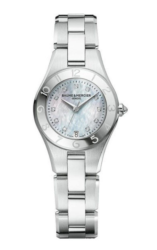 В коллекцию "LINEA", швейцарского часового бренда BAUME & MERCIER, вошла женская модель наручных часов на кварцевом механизме швейцарского производства, который помещен в небольшой корпус из нержавеющей стали. Защищенный сапфировым стеклом циферблат из натурального перламутра, в сочетании с бриллиантами в виде часовых меток, указывает такие данные: часы, минуты, секунды, дата. Сами же цифры выгравированы на безеле корпуса. Прочный браслет с раскладной застежкой также выполнен из стали. Компания BAUME & MERCIER уверяет в 50-метровой герметичности корпуса. Модель выпущена в 2011 году.