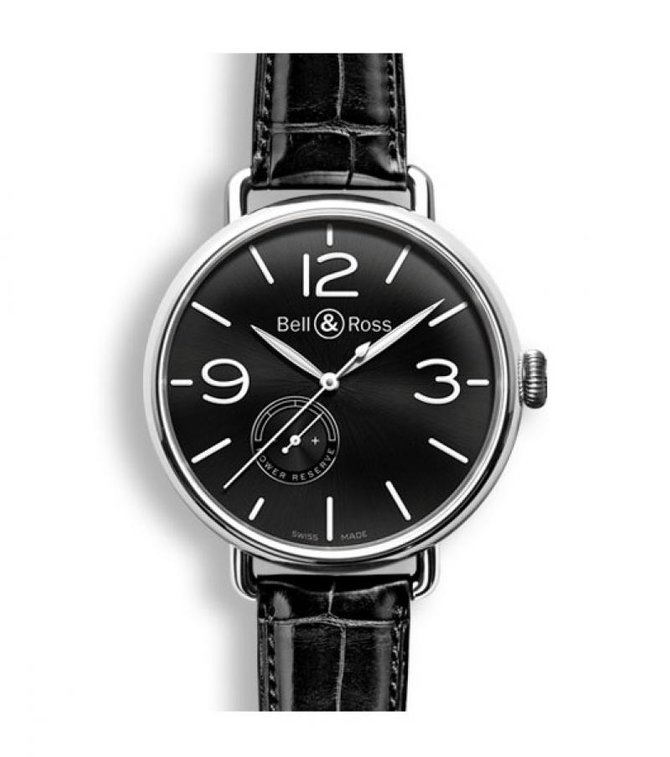 Швейцарская часовая марка Bell & Ross представила механические авиационные наручные часы в полированном стальном корпусе, диаметром 45-миллиметров. Внутри круглого корпуса размещен мануфактурный швейцарский механизм с автоматическим подзаводом, гарантирующий индикацию на часовом циферблате минут, секунд, часов, а также уровня запаса хода с помощью специального индикатора. Элементы, служащие для индикации данных, покрыты люминесцентным составом. Циферблат находится под защитой выпуклого сапфирового стекла с антибликовым покрытием. Герметичность корпуса модели составляет 50 метров. Часы укомплектованы ремешком из кожи аллигатора с классической стальной пряжкой. Модель авиационных швейцарских механических часов WW1-97 Reserve De Marche пополнила коллекцию от Bell & Ross - "Vintage".