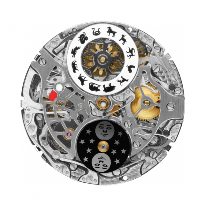 Функции: часы, минуты, секунды, дата, день недели, месяц, индикатор фазы луны, знаки зодиака, пять элементов, десять небесных стволов