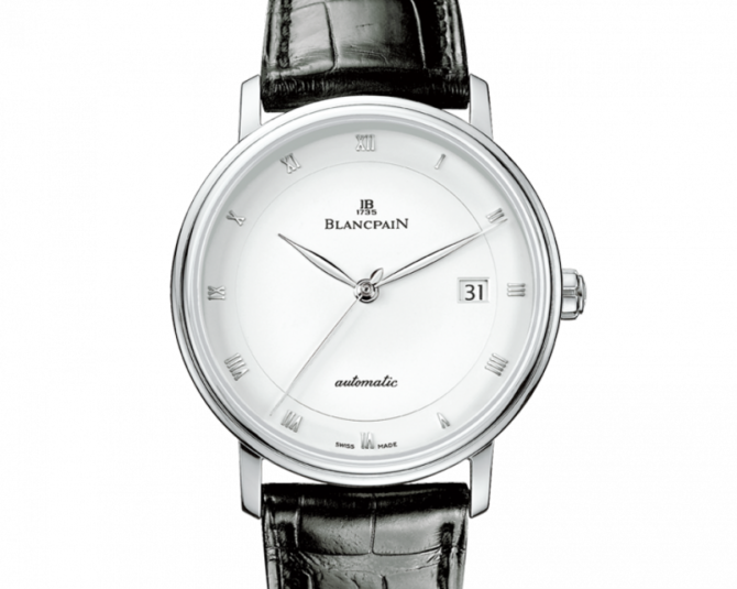 Villeret Ultra-Slim Automatic Механизм автоматический, Калибр Blancpain 1150 Размеры корпуса 38 x 9.2 мм Корпус нержавеющая сталь Функции часы, минуты, секунды, дата Циферблат белый Запас хода 100 часов Ремешок кожа аллигатора с вставкой из нержавеющей стали С началом индустриализации, пришедшимся на вторую половину XIX века, цены на часовые изделия понизились, что привело к закрытию многих мануфактур. В 1865 году, чтобы выдержать конкуренцию с американскими производителями часов, Blancpain строит двухэтажный завод на берегу реки Сюз: использование энергии падающей воды для получения электричества позволило уменьшить производственные затраты. Благодаря модернизации и ставке на изделия класса люкс мануфактура Blancpain смогла пережить кризис, который привел к закрытию многих часовых предприятий в Виллере. 1926 год был отмечен началом партнерских отношений с часовщиком Джоном Гарвудом и выпуском первых наручных часов с автоматическим подзаводом. Четыре года спустя конструкторы Blancpain адаптировали систему автоподзавода под часы маленького размера и, в сотрудничестве с компанией Leon Hatot, разработали модель Rolls в прямоугольном корпусе – первые в мире автоматические женские часы. В числе значительных достижений мануфактуры – выпуск в 1953 году профессиональных часов для подводного плавания Fifty Fathoms, изготовленных по заказу ВМФ Франции и вошедших в экипировку французских боевых пловцов. Капитан Робер «Боб» Малубье и лейтенант Клод Риффо, стоявшие у истоков французского подразделения боевых пловцов, обратились с предложением к Жан-Жаку Фихтеру, и тот блестяще справился с поставленной задачей. Модель Fifty Fathoms, которой отдавал предпочтение, в частности, Жак-Ив Кусто, стала знаковой моделью для всех любителей подводного плавания. года спустя Rayville-Blancpain вновь производит сенсацию, выпустив модель Ladybird, оснащенную самым маленьким на тот момент автоматическим механизмом круглой формы.