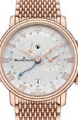Основные выразительные черты линии VILLERET - изысканность и умеренный консерватизм в сочетании со сложными механизмами. Механизм этой модели часов с автоматическим заводом. Он состоит из 392 деталей и 36 драгоценных камней, запас хода модели - 45 часов. Выпущенный корпус (диаметр - 40.3 мм, толщина - 12.1 мм) выполнен из красного золота. С двух сторон корпуса модели расположено сапфировое стекло. Водонепроницаемость - 30 метров. В комплекте браслет из кожи аллигатора коричневого цвета с раскладной золотой застежкой. Часы имеют кремниевую спираль и такие функции: время двух часовых поясов, будильник. Швейцарская компания-производитель швейцарских часов Blancpain была основана в 1735 году Жан-Жаком Бланпа. На то время это была маленькая мастерская в деревне Вильре, Швейцария. А до уровня завода мастерскую поднял старший сын Давида-Луи. Звали его Фредерик-Луи. Фирма Blancpain никогда не производила кварцевые часы. Их принцип - механика! Эти часы - идеальный вариант как для подарка, так и для баловства себя.