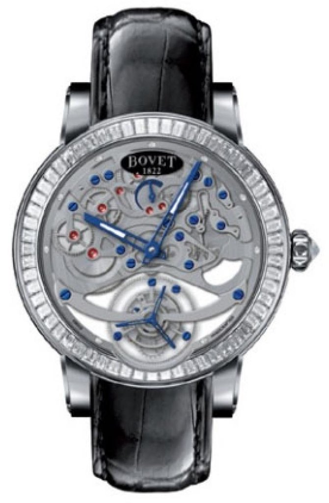 Корпус из высококлассного золота (диаметр 41 мм); механизм с ручным заводом, недельным запасом хода, гарантирующий индикацию часов, минут, секунд и запаса хода; для пошива ремешка использовалась качественная кожа атлантического аллигатора с золотой пряжкой - именно так выглядят идеальные наручные часы от марки Bovet, родившейся в Швейцарии. Корпус этих часов шикарно украшен багетными бриллиантами. «В обществе массового потребления во мне зрело убеждение, что мы вновь возвращаемся к традициям, хорошей школе, качественной работе — чему полностью соответствует марка Bovet. Ведь часы Bovet действительно уникальны, это шедевр часового искусства», — говорит владелец Раффи. Эти часы созданы для людей, знающих, чего они хотят, любопытных и открытых всему новому, любителей подлинных и эксклюзивных вещей по приемлемым ценам, которые покупают часы для собственного удовольствия. Предпочитая удобство престижу, а качество внешнему оформлению, производитель стремится создать атмосферу доверия. Дизайнеры сделали выбор в пользу динамичного и элегантного стиля, отличающегося оригинальными деталями, чаще всего украшающими циферблаты.