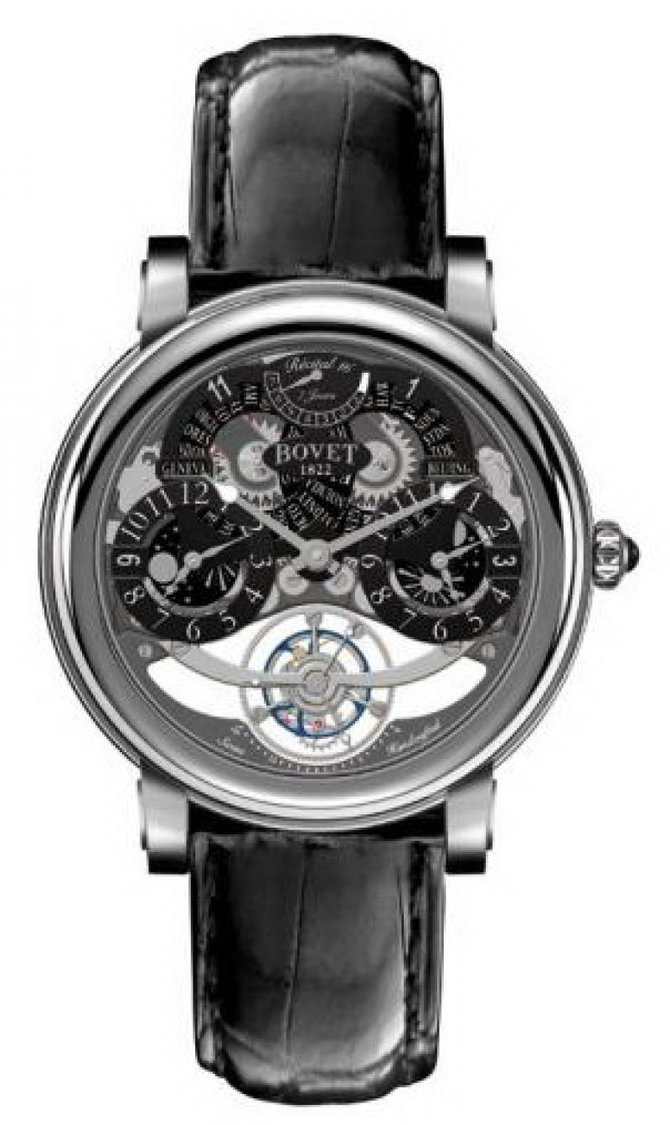 Эти швейцарские часы представлены авторитетнейшей компанией на мировом часовом рынке - Bovet. Лимитированная модель пополнила шикарную коллекцию бренда - "Dimier Collection". Часы обладают разнообразными сложными функциями — они показывают часы, минуты, секунды; 3 часовых зоны; индикаторы - день/ночь, запаса хода, различных 24-х городов. Элегантно и, одновременно, стильно выглядит дизайнерский замысел изготовленного корпуса, в который мастера фирмы поместили механизм с турбийоном и недельным запасом хода. Частота баланса механизма из 68 элементов - 21600 пк в час. Надежную защиту часам обеспечивает сапфировое антибликовое стекло, устойчивое к серьезным повреждениям. Виртуозное время владельца швейцарского часового бренда Bovet – Паскаля Раффи, стало чуть ли не нарицательным и настолько привычным, что, казалось бы, может наступить усталость от этого безумия красоты. Однако каждая новая модель просто «добивает» коллекционеров и основательно опустошает их кошельки. Стильные аксессуары с легкостью изменят ваш образ, подчеркивая достоинства и сглаживая недостатки, а стильные настоящие швейцарские часы – достойный аксессуар, не правда ли?