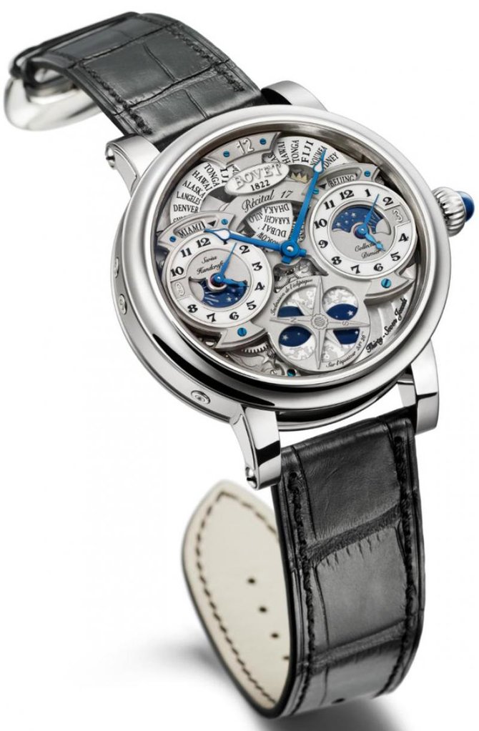 Récital 17 является третьей моделью наручных часов, работающей от мануфактурного механизма собственной разработки Bovet - Virtuozo II. В прошлом году состоялась долгожданная премьера первого базового мануфактурного калибра Bovet. Механизм, получивший название Virtuoso II, поселился в 12-й модели коллекции Recital, которая кроме номера обрела и собственное имя — Monsieur Dimier. Virtuoso II был представлен сразу в двух премьерах: классической Recital 12 Monsieur Dimier и чуть более усложненной Recital 15. Теперь мы этот же механизм можем увидеть в Dimier Recital 17. Калибр разрабатывался с учетом философии Bovet, чтобы при необходимости стать базой для размещения множества индикаторов, а также площадкой виртуозной игры с эстетическими возможностями. В Récital 17 - можно пользоваться множеством возможностей, например, тремя часовыми поясами одновременно, следить за точными фазами луны, наблюдать индикацию текущей фазы лунного цикла в обоих земных полушариях. Именно у Bovet соединились все условия для воплощения сказочных эстетических и технических идей. У королевства Bovet есть своя география, включающая несколько разнообразных производств и даже величественный неприступный замок — знаменитый Шато-де-Мотье, историческая резиденция семьи Бове.