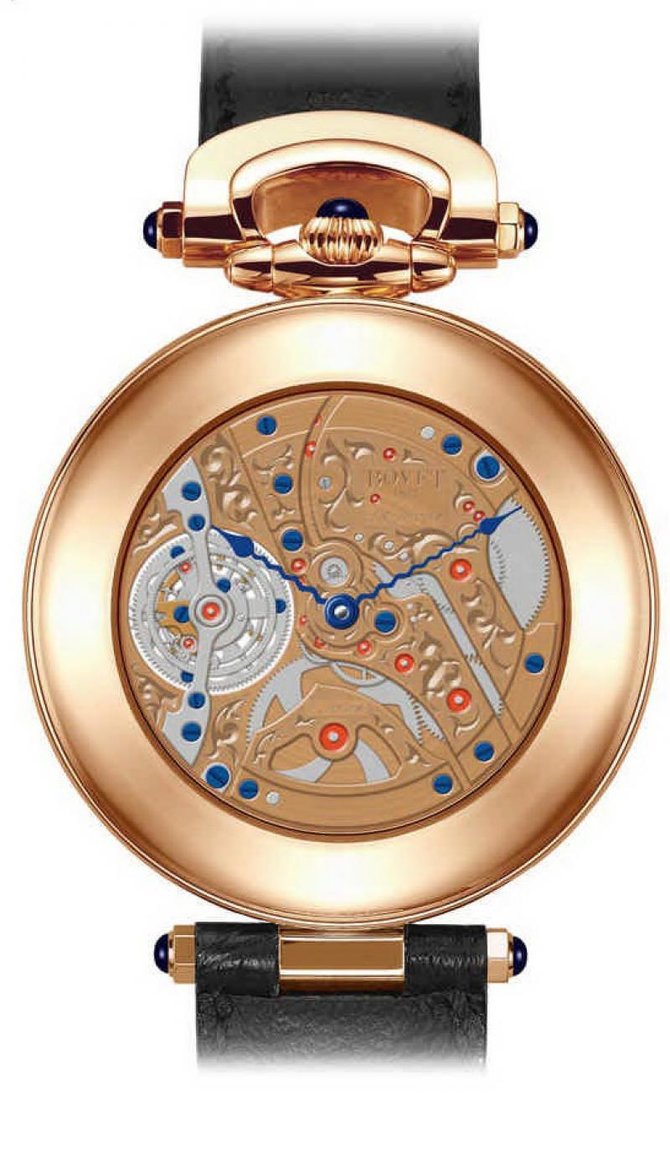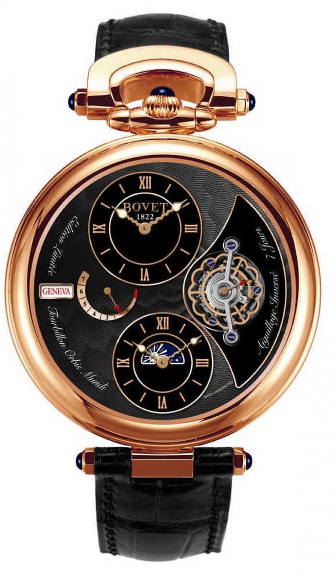 Неординарную модель представила часовая компания Bovet - часы, способные перевоплощаться в три разновидности - наручные, карманные и настольные, меняя только способ фиксации корпуса. Ремешок из кожи аллигатора с классической пряжкой и цепочка для карманного использования - в комплекте. Тщательно полированный корпус произведен из качественного 18-каратного золота. Циферблат защищает прочное сапфировое стекло, которое славится устойчивостью к царапинам и хорошими антибликовыми свойствами. Виртуозное время владельца швейцарского часового бренда Bovet – Паскаля Раффи, стало чуть ли не нарицательным и настолько привычным, что, казалось бы, может наступить усталость от этого безумия красоты. Однако каждая новая модель просто «добивает» коллекционеров и основательно опустошает их кошельки. Неудивительно, что поклонниками часов Bovet в XVIII веке были европейские аристократы, представители королевской семьи и даже китайский императорский двор. Вы сможете обратить на себя внимание и на вечернем приеме, и в офисе, продемонстрировав хороший вкус даже в таких шикарных мелочах, как Ваши наручные часы.