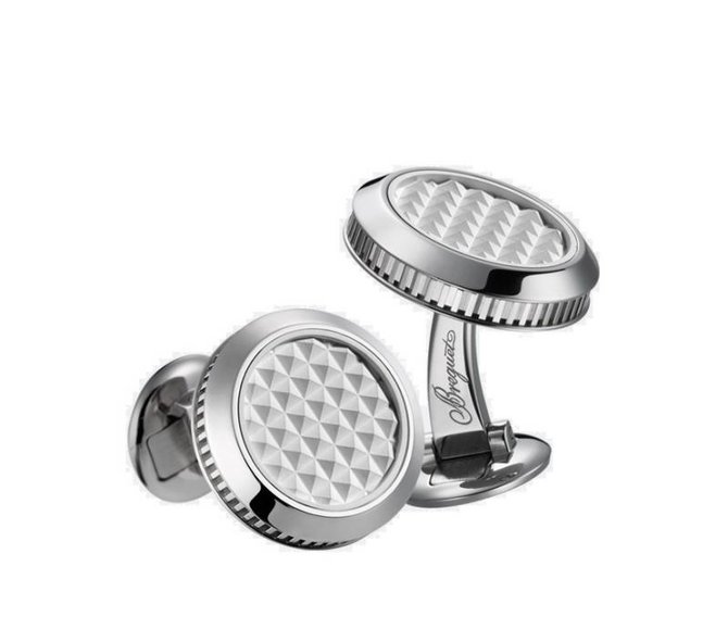 Элегантные запонки из белого золота с белыми вставками производства известной часовой компании Вreguet. Складывается ощущение, что «Старший» все еще руководит предприятием. Он до сих пор живет в сердцах сотрудников Breguet и, кажется, до сих пор – незримо – присутствует в стенах компании. Такое положение вещей объясняется не корпоративной этикой или неким внутренним циркуляром: Николя Хайек оставил столь глубокий след в душах многих сотрудников, что они решили всегда хранить память о нем. Хайек предложил план по реструктуризации, основанный на объединении компаний. Вслед за реорганизацией Хайек совместно с группой инвесторов приобрел слившиеся компании и основал часовой холдинг SMH. Этот холдинг, известный сегодня как Swatch Group, не только дал новую жизнь швейцарскому часовому производству, но и объединил целую группу знаменитых часовых производителей, таких как Breguet, Blancpain, Omega, Jacquet Droz и т.д.