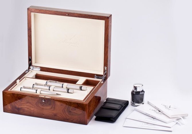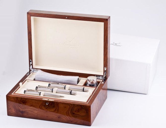 Набор из 3 пишущих инструментов: шариковая ручка, перьевая ручка и ручка ролер. Посвящение великим писателям. Бальзак, Стендаль, Пушкин, Дюма и многие другие великие писатели воздали честь таланту Бреге, неоднократно цитируя имя знаменитого часового мастера в своих произведениях. Упоминания о часах Breguet во французской и зарубежной литературе свидетельствуют об исключительной репутации часового Дома и его основателя. Сегодня Breguet возвращает долг великим писателям, предлагая ценителям искусства первую коллекцию инструментов для письма. В ее основу положена традиционная для Дома Breguet триада: благородство материалов, безупречность форм и верность ценностям компании. Наши инструменты для письма можно приобрести в бутиках Breguet.
