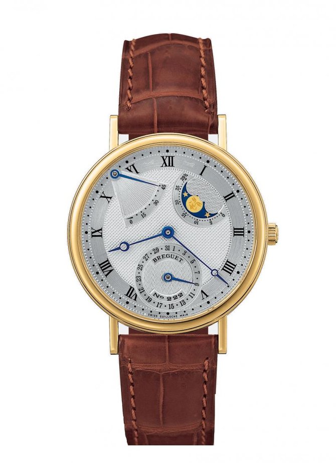 Часы линии Classique представлены в корпусе из 18-каратного желтого золота. Внутри золотого корпуса находится автоматический механизм с указателями даты, запаса хода, фаз Луны и лунного цикла. Спираль и анкер модели произведены из кремния. Часовой циферблат из посеребренного золота с гильошированным вручную узором. Задняя часовая защитная крышка из сапфирового стекла, сквозь которое можно наблюдать за работой часового механизма. Водонепроницаемость женского корпуса составляет 30 метров. После многолетних усилий, направленных на разработку более современных часовых механизмов и других технических усложнений, Часовые Дома обратились наконец к дизайну, который бы в наилучшем свете представил все достижения последних лет. Даже культовые модели не остались без внимания и вышли в свет в современном исполнении. Но самая сложная задача – это создание такой модели, которая бы не выходила из моды и выглядела всегда современно. К этому стремятся все Часовые Дома, но удается немногим. Чтобы привлечь внимание коллекционеров и заставить глаза засиять лихорадочным блеском, все средства хороши. И, безусловно, хорошие часы подобны настоящему произведению искусства – они позволяют получить эстетическое наслаждение и на время забыть о повседневности. Старинные документы и подлинные чертежи, найденные в архивах Музея Breguet, а также в знаменитом парижском Музее искусств и ремесел, служили единственным ориентиром для воссоздания каждой функции и каждой детали художественной отделки уникальных часов. Сравнительный анализ старинных часов, в частности, часов, принадлежащих герцогу Пралену, позволил выявить неизвестные до сих пор элементы эстетики и приемы часового мастерства, характерные для эпохи их создания. Их внимательное изучение помогло специалистам Дома возродить частично утерянные знания и приемы.