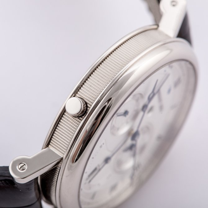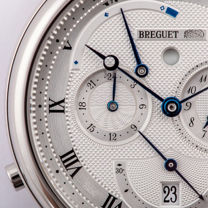 Компания Breguet предлагает оценить дизайн модели Réveil du Tsar, которая была впервые представлена в 2003 году с гильошированным циферблатом. В корпусе из 18К белого золота с рифленой боковой поверхностью установлен автоматический механизм Breguet 519F с запасом хода 45 часов. Поставляется новинка на ремешке из кожи крокодила с раскладной застежкой из 18К белого золота. Индикация часов и минут осуществляется с помощью центральных стрелок. Дополнительное окошко у метки 6 предусмотрено для индикации секунд. У этой же метки находится апертура даты. Боковой циферблат с 24-часовой разметкой, расположенный в положении «9 часов», предназначен для индикации времени второго часового пояса. Секторная шкала с аналоговым указателем между меток 10 и 12 показывает запас хода, а круглая апертура с римскими цифрами и двумя стрелками у метки 3 осуществляет функцию будильника. Индикатор включения/выключения будильника находится в круглой апертуре на 12 часах. Защищает циферблат сапфировое стекло, установленное также и на задней крышке.