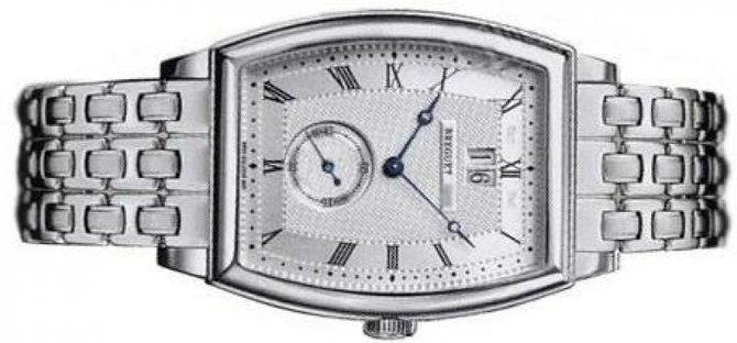Очередная новинка в мире часов Heritage Collection 5480BB/12/BB0 от производителя Breguet. Корпус данной модели выполнен в форме бочки из 18-каратного белого золота , полирован, и имеет такие параметры: 40,4 мм в диаметре и 9,25 мм в толщине. Боковая сторона корпуса украшена неглубоким рифлением, что вполне характерно для стиля Breguet. Циферблат сделан из цельной пластины 18-каратного золота. Узор гильоше, нанесен вручную при помощи гильоширной машинки, и великолепно смотрится на посеребренном циферблате. Стрелки отлиты вручную из вороненной стали, и украшены характерными для стиля Breguet "яблоками". Ультратонкий механизм оснащен калибром 516GG, и имеет запас хода приблизительно на 72 часов. Водонепроницаемость модели составляет 100 футов, что равняется 30 метрам. Ремешок сделан из белого золота, и оснащен застежкой в 18 карат.